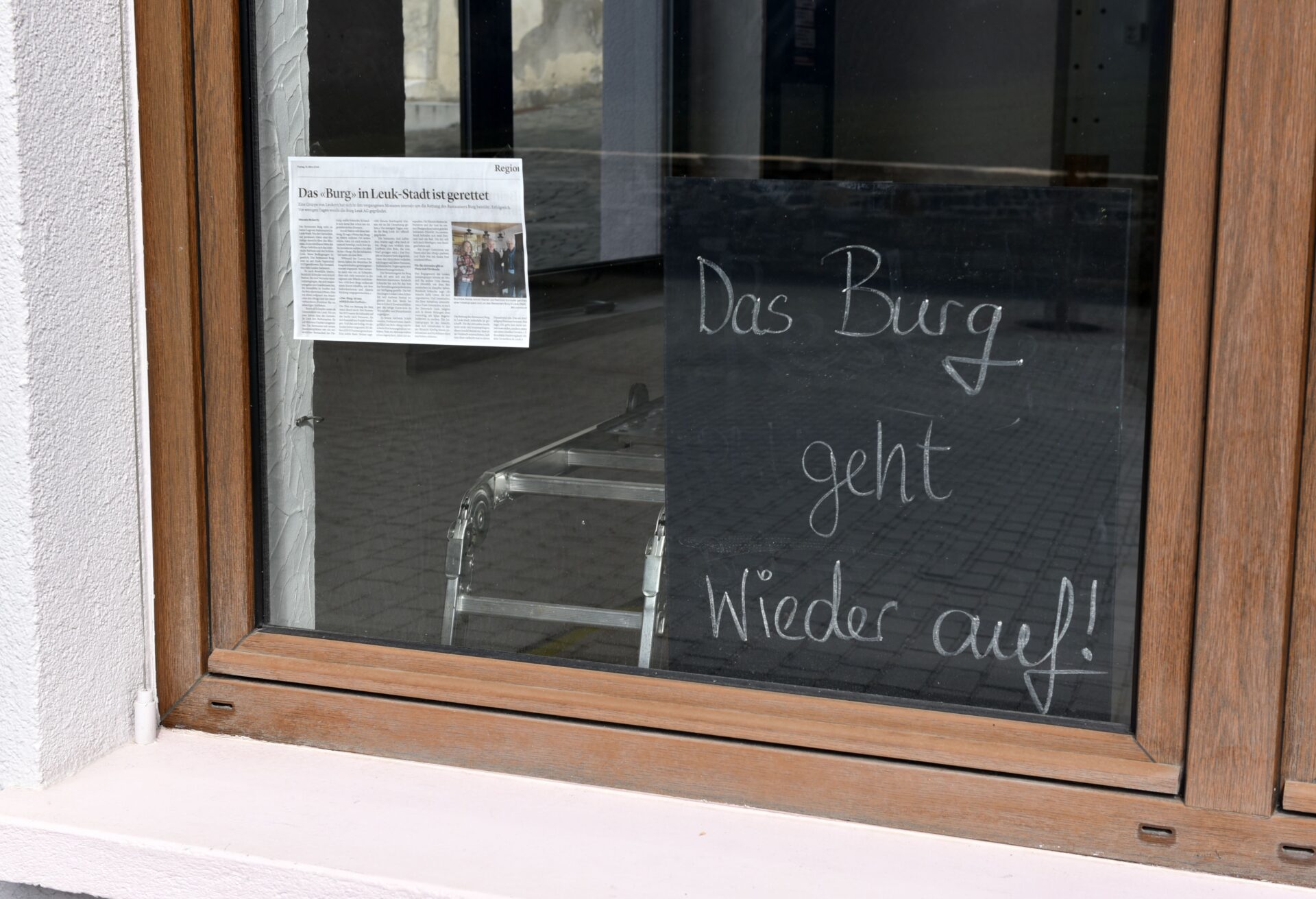 Zwei Varianten ergaben sich: entweder wird das «Burg» in ein Wohnhaus umgewandelt, oder der Betrieb des Restaurants lässt sich nach einem Verkauf weiterführen. Den Erben boten sich beide Möglichkeiten, sie hatten die Wahl. Sie gaben einer Interessentengruppe, die sich für eine Weiterführung des Restaurants engagiert, den Vorzug. Nicht zuletzt auch im Sinne des verstorbenen Bruno Steinemann, der sich für ein belebtes Leuk-Stadt eingesetzt hatte.
